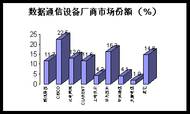 (3)市場發(fā)展及預(yù)測: 2001年數(shù)據(jù)通信設(shè)備市場仍會保持高速增長,在網(wǎng)絡(luò)交換平臺、接入服務(wù)器、路由器等高端產(chǎn)品領(lǐng)域,非外資通信設(shè)備廠商有望繼續(xù)擴大領(lǐng)地,外資廠商如CISICO、IBM、HP等預(yù)計會下延其產(chǎn)品線不斷向中低端產(chǎn)品滲透。市場競爭的加劇可能促使更多的企業(yè)進行戰(zhàn)略性合作。網(wǎng)絡(luò)運營業(yè)務(wù)準(zhǔn)入門檻的降低將再度加劇運營商間的競爭,由此會進一步拉動數(shù)據(jù)通信設(shè)備市場的需求、促成設(shè)備廠商與運營商在多層面上合作。