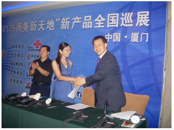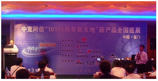 2007年6月27日,中寬網(wǎng)信”101756商務(wù)新天地”新產(chǎn)品全國巡展廈門站在廈門喜來登酒店勝利召開。會議的主旨是向中小企業(yè)及呼叫中心用戶推出個(gè)性化的通信增值服務(wù)方案,提高企業(yè)競爭力;同時(shí)為投資者提供投資小回報(bào)快的投資項(xiàng)目。此次會議得到了中國聯(lián)通的大力支持,廈門聯(lián)通數(shù)據(jù)部副總監(jiān)林長春先生表示中國聯(lián)通十分看好中國電信融合市場的巨大產(chǎn)業(yè)機(jī)會,有信心與中寬網(wǎng)信真誠合作,利用雙方各自平臺優(yōu)勢,深度合作,資源互補(bǔ),共同參與激烈的電信市場競爭。