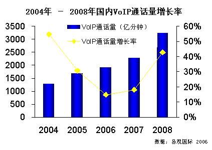 新華美消息:易觀國際《中國 VOIP 市場監(jiān)管政策趨勢(shì)預(yù)測專題報(bào)告2006》中指出,VoIP 是大勢(shì)所趨,政策壓制的原因是開放的條件不成熟。一切政策的制定都要遵從一個(gè)大前提,即保障公開競爭、維護(hù)國家和用戶利益、防止重復(fù)建設(shè)。2004年-2008年國內(nèi) VoIP 通話量增長率圖下載: